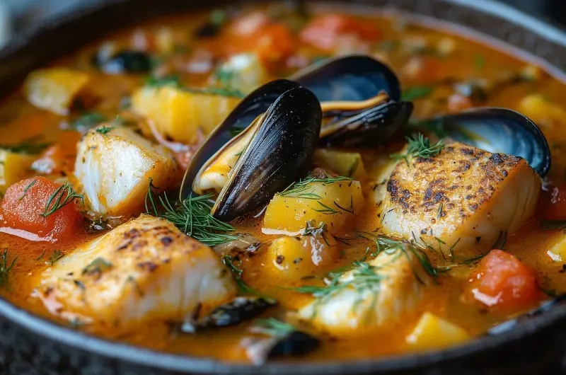 Our voyage would be incomplete without a stop in the French port city of Marseille, the home of the legendary Bouillabaisse. This is not just a fish soup; it is a revered institution with its own set of rules and traditions. Originating as a humble fisherman’s stew made with the bony rockfish they were unable to sell at market, it has since evolved into a gourmet delicacy. An authentic Bouillabaisse must, by charter, include at least four types of specific Mediterranean rockfish, such as rascasse (scorpionfish), which is essential for the broth’s flavor and consistency.